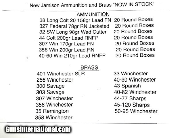 New! Jamison Ammunition and Brass Available in Hard to Find Calibers Take a Look!