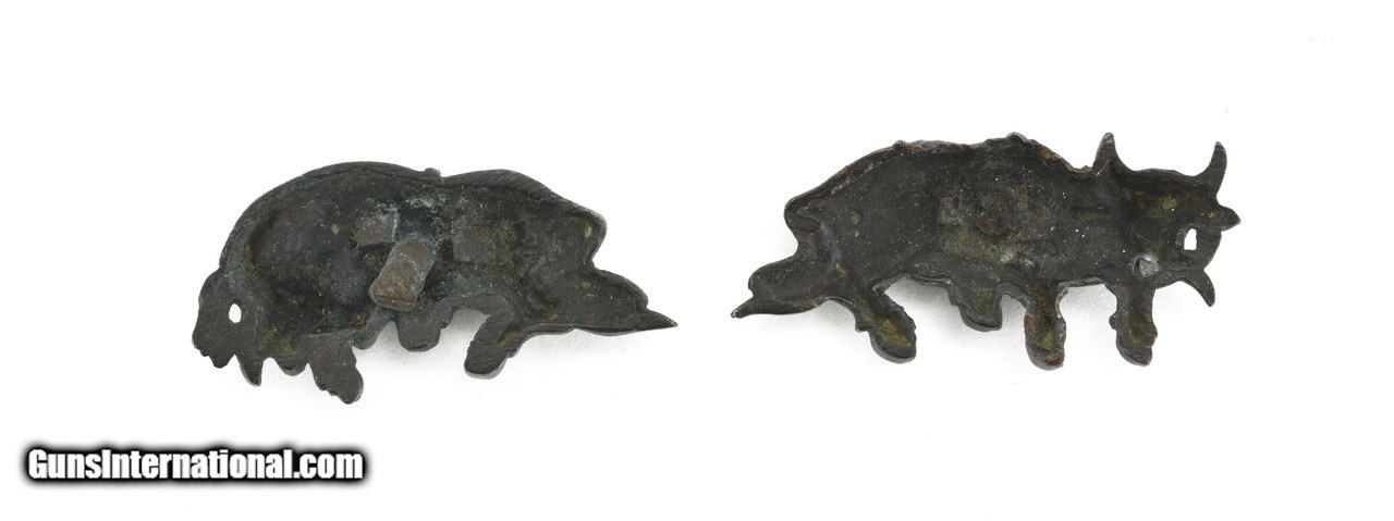 Description: "Kinko Menuki. Shakudo water buffalo with gold highlights. Unsigned. Price: $245.00 Contact Seller |