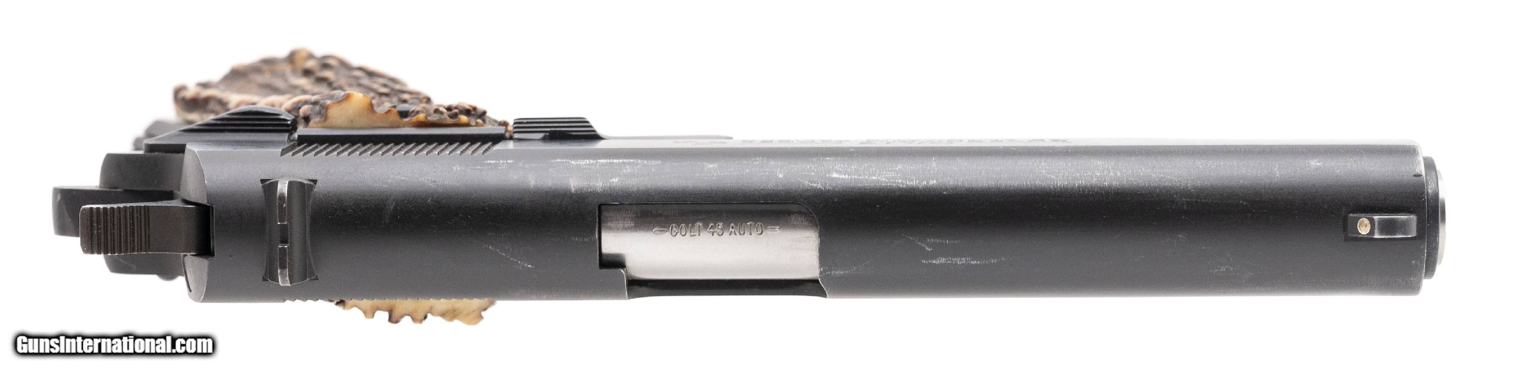 Description: "SN:2849849. Made in 2012. .45ACP with a 5"" barrel. Bore is in excellent condition. Full size 1911 handgun. Finish and grips are very good condition with handling wear noted on top of slide. Pistol has stag grips. Overall condition is very good. (CONSIGNMENT) Price: $1,080.00 Contact Seller |