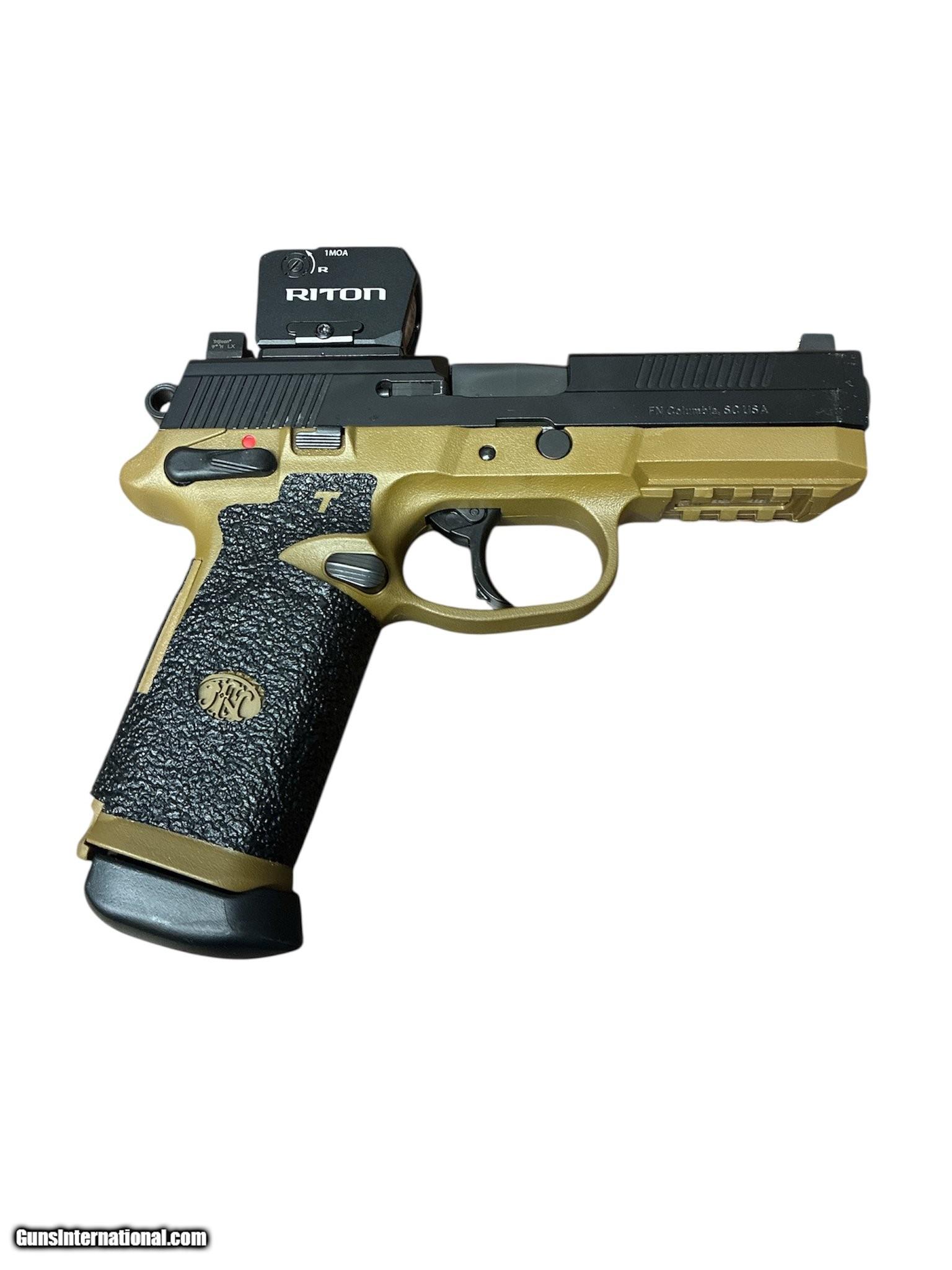 Description: Guns Listing ID: 592601 Great shape overall Has grip tape on handle Riton 1MOA red dot Trijicon night sights 1-15rnd mag Manufacturer: FN Model: FNX-45 Caliber Info: .45 ACP Condition: Used - Non-Certified Barrels: 5" BARREL Action: SEMI AUTOMATIC Finish: black/fde Price: $999.99 Contact Seller |