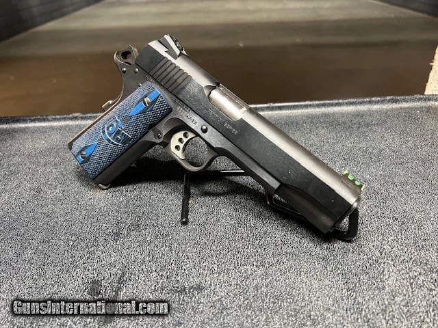 Description: Guns Listing ID: 593159 Colt 1911 Government Competition 9mm Luger 5in w/ G10 Blue & Black Grips Pistol - 9+1 Rounds - Colt‚s 1911 Competition pistol features custom G10 blue grips with a scallop texture and the Colt logo, dual recoil spring system, and National Match barrel. It has Novak sights for precision shooting with a fiber optic front with adjustable rear sight. It comes with 2 magazines original case and paperwork. This 9mm model has a 70 series firing pin system. Manufacturer: COLT Model: 1911 Government Competition model Caliber Info: 9MM LUGER (9x19 PARA) Condition: Used - Non-Certified Barrels: 5" BARREL Action: SEMI AUTOMATIC Finish: black Price: $999.99 Contact Seller |