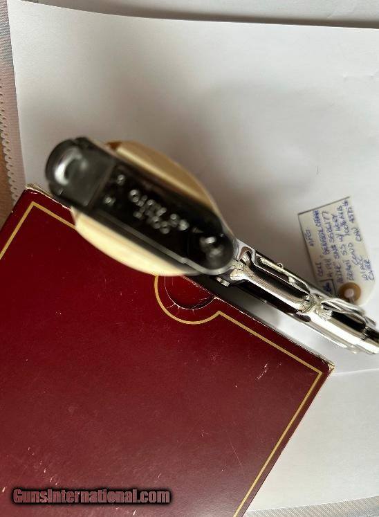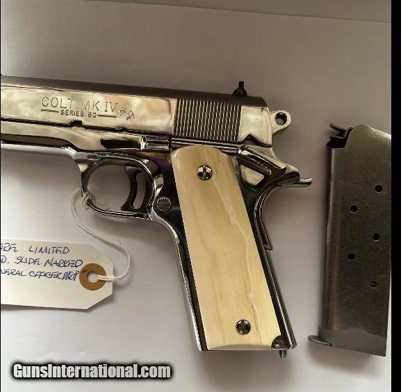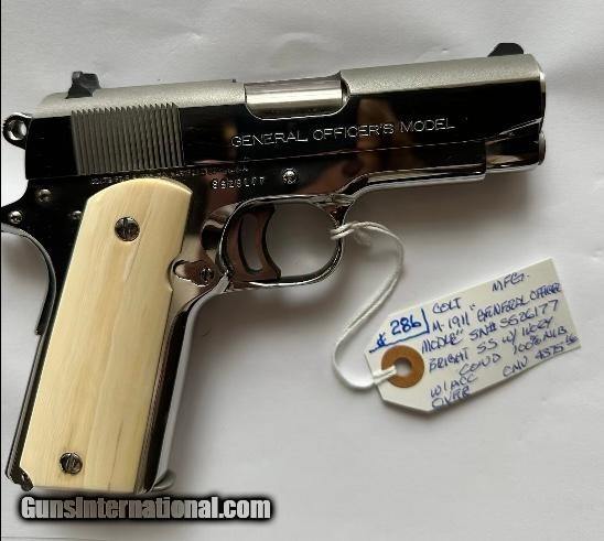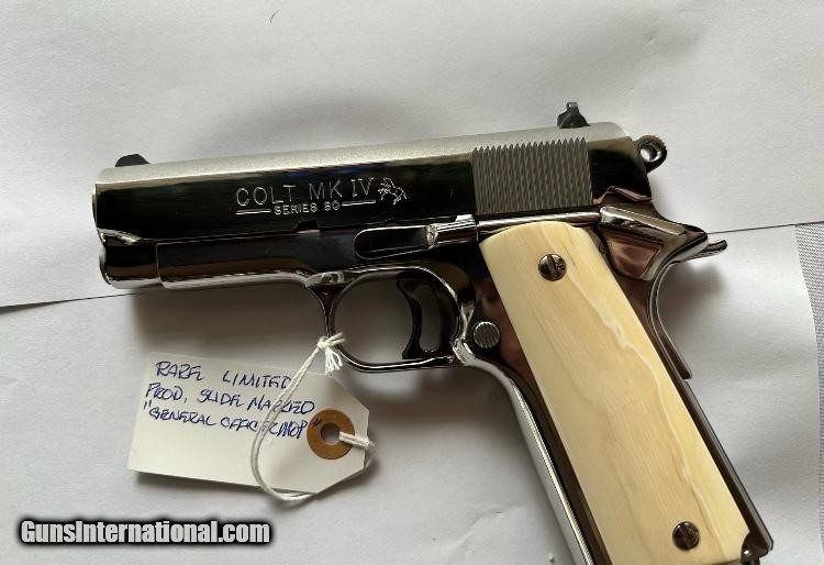 Description: NIB Rare GENERAL OFFICERS' Series 80 bright polish stainless steel with elephant ivory grips Handgun Caliber: .45 ACP (.45 Auto) Manufacturer: COLTS Model: Series 80 Serial Number: SS26177 Barrel Length: 3.5 Condition: NIB Price: $5,000.00 Contact Seller |