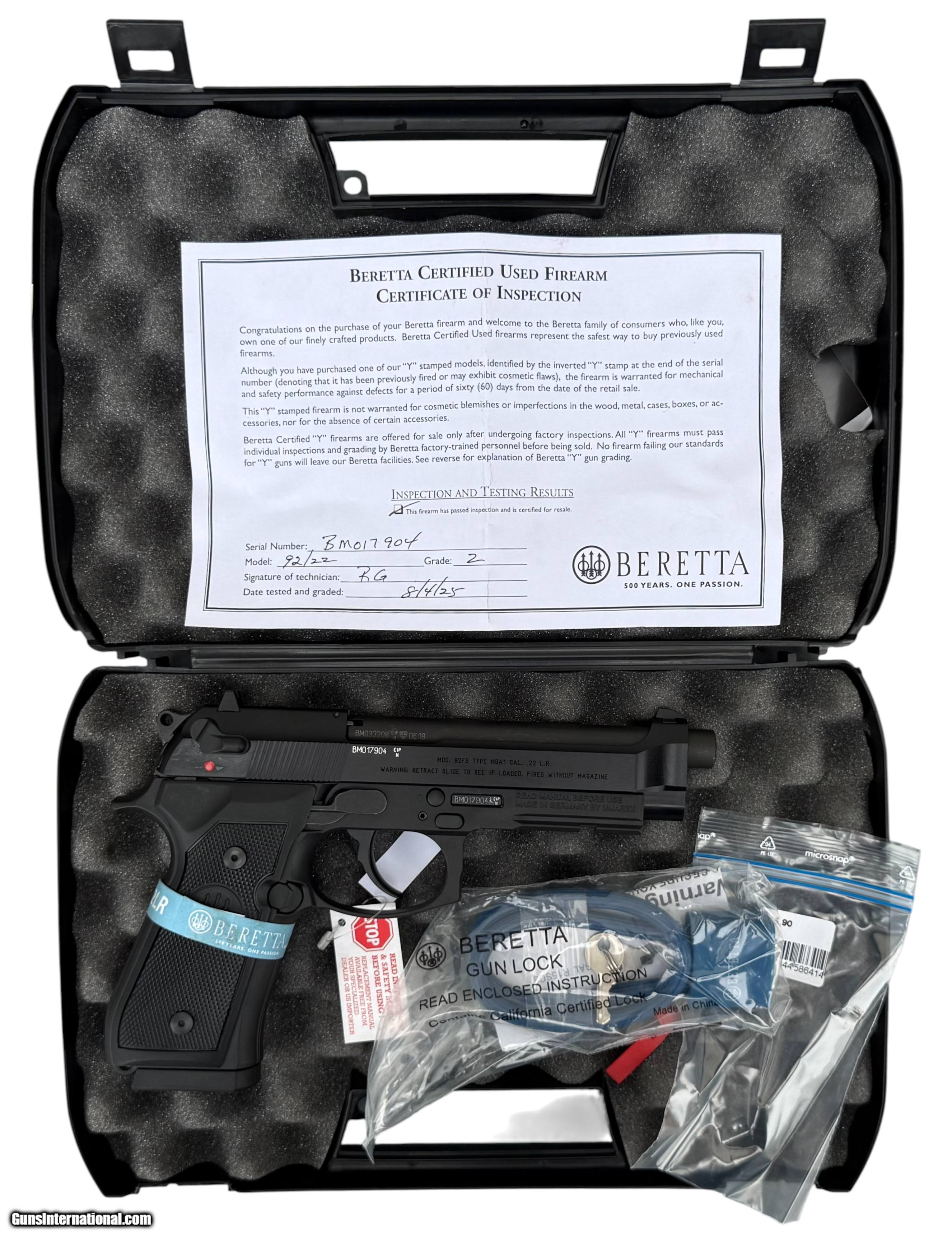 Beretta M9A1 22 LR Y Model Grade II 15 Round Capacity M9-A1 J90A1M9A1F19-1