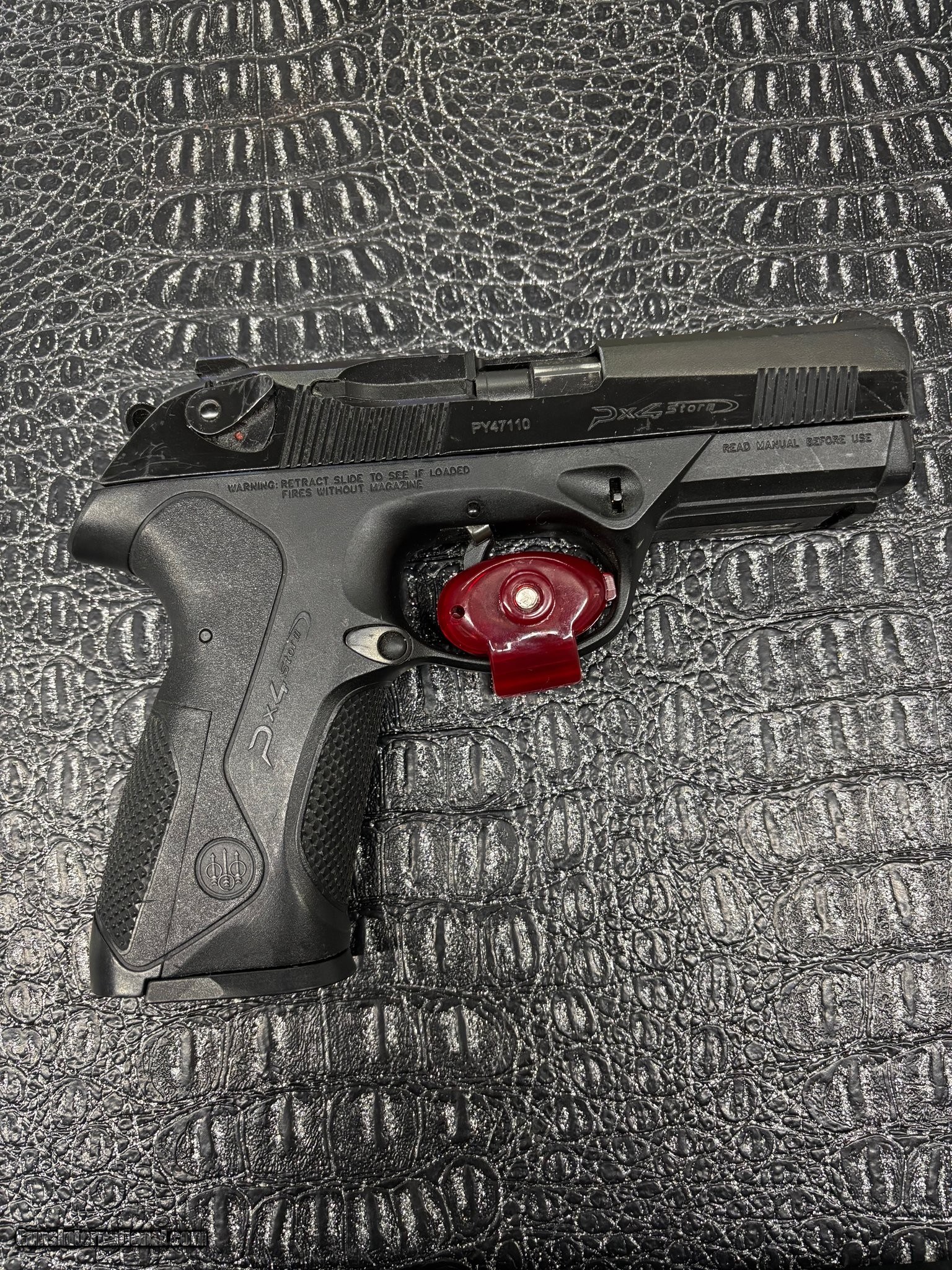 Description: Guns Listing ID: 583724 Beretta pistol in good condition as seen on images with scuff marks on slide. With. 1 magazine of a capacity of 15 rounds. Full-size 40 s&w Manufacturer: BERETTA Model: PX4 STORM Caliber Info: .40 S&W Condition: Used - Non-Certified Barrels: 4" BARREL Action: SEMI AUTOMATIC Finish: black Price: $519.99 Contact Seller |