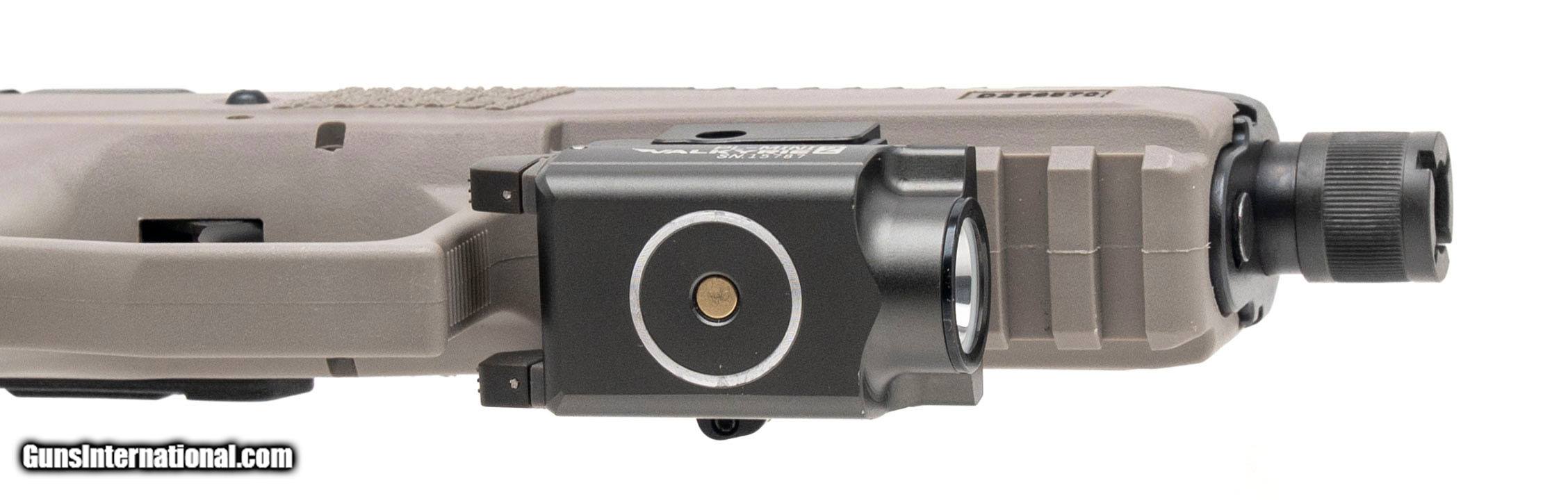 Description: "SN: D298570. Modern production, 9mm with a 5.15"" threaded barrel. Bore is excellent. Full size double action pistol with an Olight PL-Mini 2 Valkyrie tactical light, co-witnessed tritium night sights, manual decocker, matte black finish, and urban grey polymer frame. Includes additional magazine, 2 additional back straps, and original carry case. Overall condition is excellent. Price: $849.95 Contact Seller |