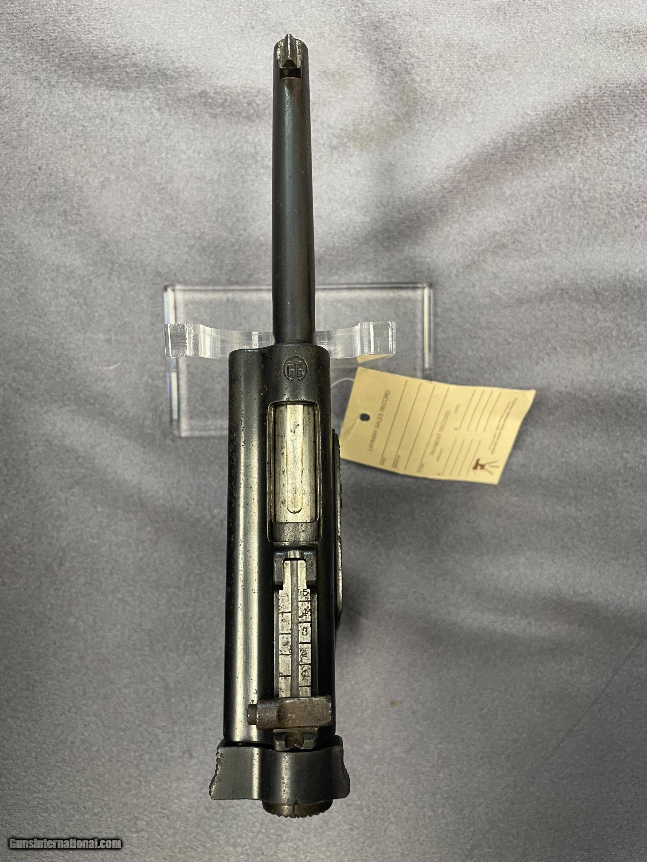 Description: Listed is a 3 digit serial numbered 'Papa' Nambu Pistol. Pistol come with an aluminum based magazine. The wooden pistol grip has a small crack on one side. The finish on the gun has some wear on the top of the reciever and the end of the barrel.This pistol is in very good condition considering it age and action it has been through Price is $3250.00 + $50.00 Shipping & Insurance Handgun Caliber: 8x22mm Nambu Manufacturer: Koishikawa Arsenal Model: Papa Nambu Serial Number: 914 Barrel Length: 4 3/4 Condition: Very Good/ Slight wear Metal Condition: Very Good/ Slight Wear Wood Condition: Small crack Bore Condition: Very Good/slight wear Action: Semi-Auto Price: $3,250.00 Contact Seller |