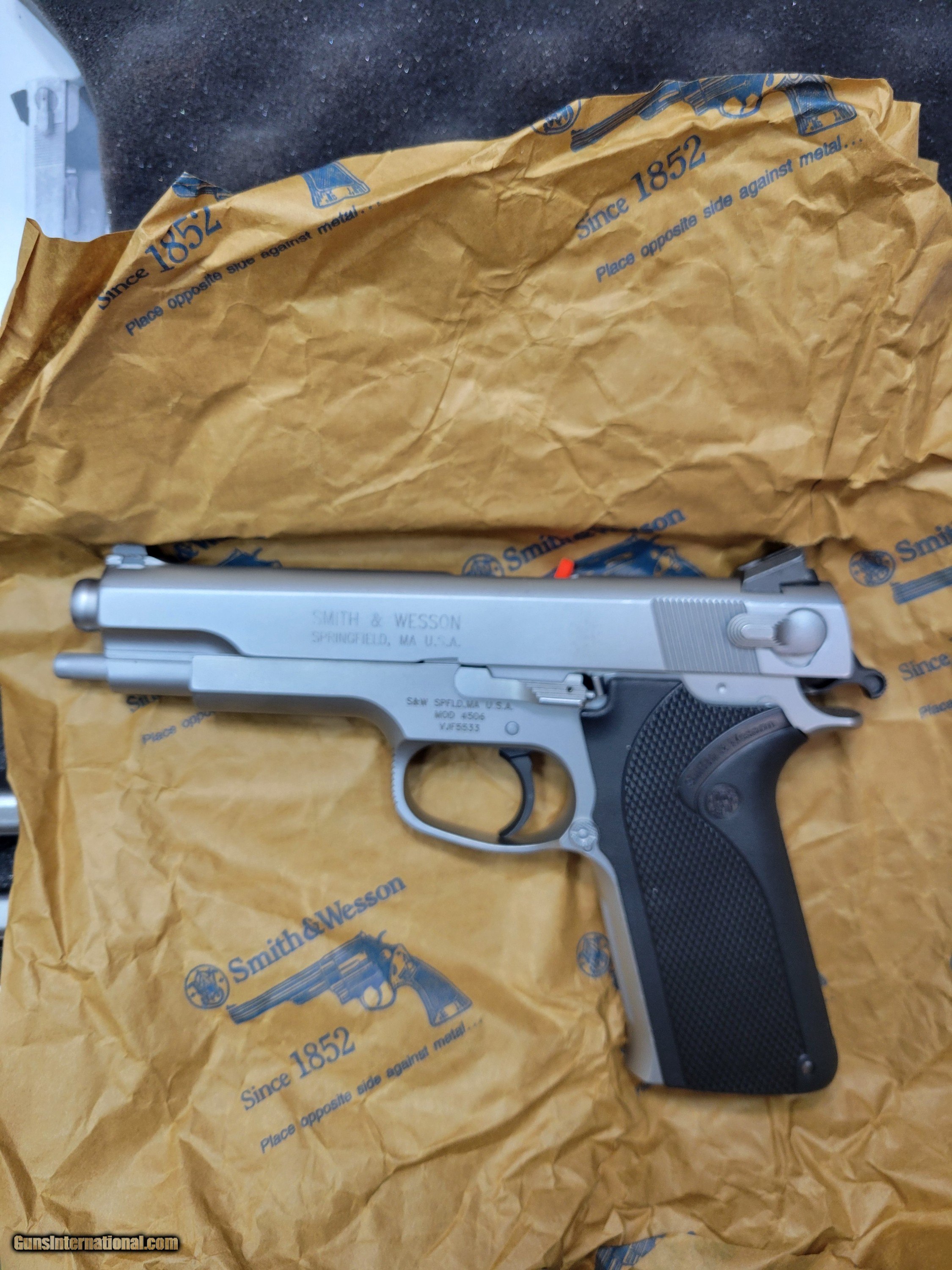 Description: SMITH&WESSON 4506 NOVAK SITES WITH TWO FACTORY MAGAZINES , BOX AND PAPERS Manufacturer: SMITH& WESSON Model: 4506 Barrel Length: 5 Condition: EXCELLENT Metal Condition: EXCELLENT Price: $1,400.00 Shipping: $50.00 Contact Seller |