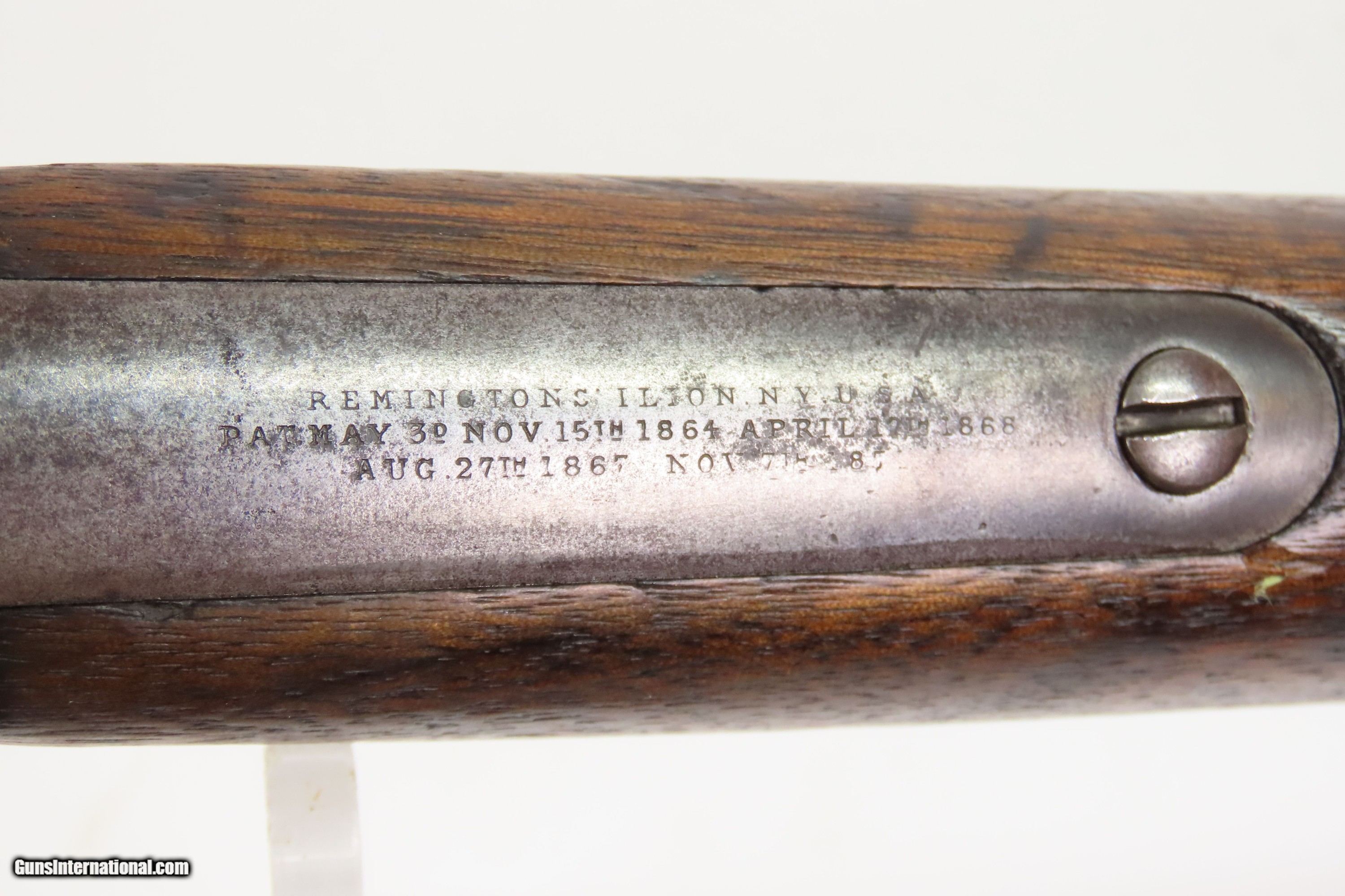 Description: NEW YORK Contract Antique REMINGTON Rolling Block MILITIA Rifle INDIAN WARS Post-Civil War Era FRONTIER ERA Rolling Block Here we present an antique State of New York Contract Remington Rolling Block Militia Rifle, made circa 1872-73 in Ilion, New York. The Remington Rolling Block rifle is a breech-loading rifle that was produced from the mid-1860s into the early 20th century by E. Remington and Sons (later Remington Arms Company). The Remington .50-70 caliber rolling block was the U.S. Army's first official cartridge rifle and among the few contenders that easily made the jump from rimfire to centerfire rounds. The state of New York held its own trials to replace its National Guard’s muzzleloaders. After briefly considering conversion methods, the state went with Remington-made .50-70 rolling blocks. After all, Remington was a home-state arms maker. It didn’t hurt that Remington willingly took many of the state’s muzzleloaders in trade. New York bought 19,450 rifles in two orders, with the first order being for 15,000 to be delivered in 1872 and a second order for 4,500 rifles ordered in 1873. These can be distinguished by the extremely high curved hammer spur, the thumb lever for the breechblock that protrudes outward instead of up and the safety locking action which automatically returns the hammer to half cock when the breech is closed. They used the standard Remington military round top, rolling block action in .50-70 Center Fire caliber. The Remington Rolling Block would serve New York until the 1890s, and sources indicate these rolling blocks served with New York Militiamen deployed out West during the Indian Wars. The overall condition is good. The bore is bright and shiny with sharp rifling. Robust action. Original finish with patina. The stock is in good condition, showing use. Ramrod a bit loose in its channel. Wrist cartouches are present. Appears to have a “SEPT.09” date just above the 45 on the right side of the stock. Own the original! This is a legitimate antique and not a reproduction. Barrel is 36 inches. Caliber: .50-70 GOVT Overall condition as seen in photos. Very Fast. Very Safe. FREE SHIPPING WORLDWIDE. Delivered directly to your door by express mail! Guaranteed AUTHENTIC & Includes CERTIFICATE OF AUTHENTICITY. ancestryguns $2200 #256038 Antique: Yes Price: $2,200.00 Buy Now Pay with