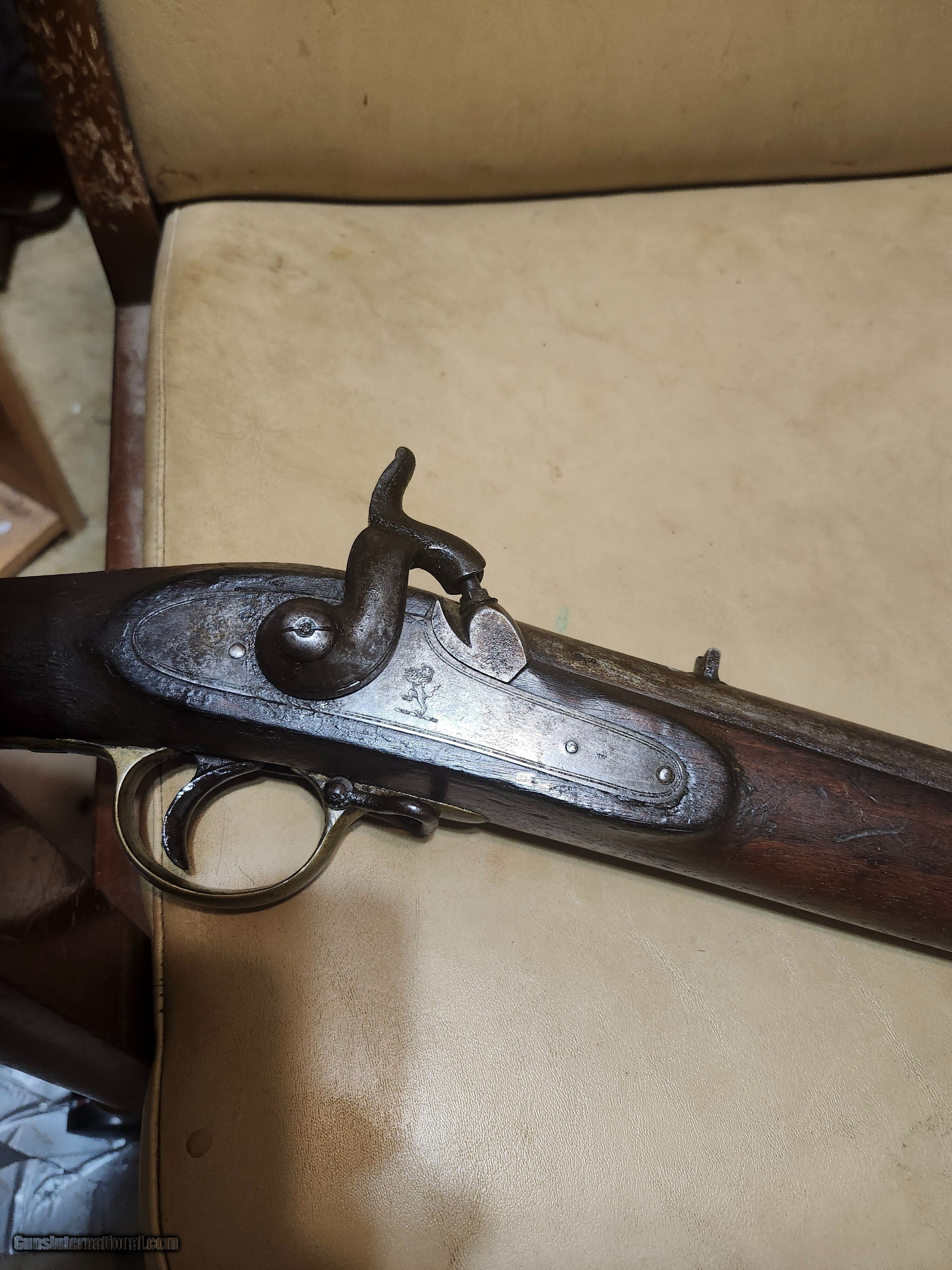 Description: 54 inches oa ///// 39 inch smooth bore barrel with vg british proof marks on barrel / this is one of the beter ones i have seen // stock looks unsanded with lots of original looking finish / looks all original and complete and described from pictures of similar guns / action works fine / i dont see any heavy deep ;pittiing just a fewv normal patches// fine nipple with no pitting around nipple //$67 sh Antique: Yes Manufacturer: british / india co Model: 1842 indian pattern Price: $995.00 Contact Seller |