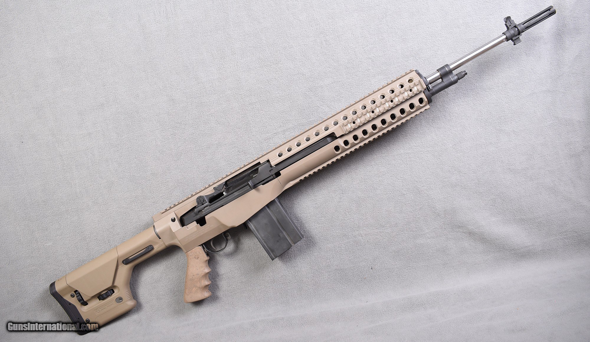 Description: This Springfield M1A is set up with a Troy Tactical Chassis and a Magpul PRS gen 3 Stock. Please be sure to carefully review all photos provided to fully understand the condition of this firearm before purchasing. This firearm is being offered by the Boise Cabela's Gun Library. We will ship for free to your local Cabela's or Bass Pro Shops for transfer to you. If you are interested in purchasing or have any questions, please call the Boise Cabela's Gun Library directly at (208)-672-7922. If you reach our voicemail, please leave a message with this information, and we will return your call as soon as possible. 7.62mm NATO/.308 Metal Condition: Excellent Bore Condition: Excellent Barrels: 22 Weight: 12.5 Lbs Item Location: Boise, ID Price: $1,799.99 Contact Seller |