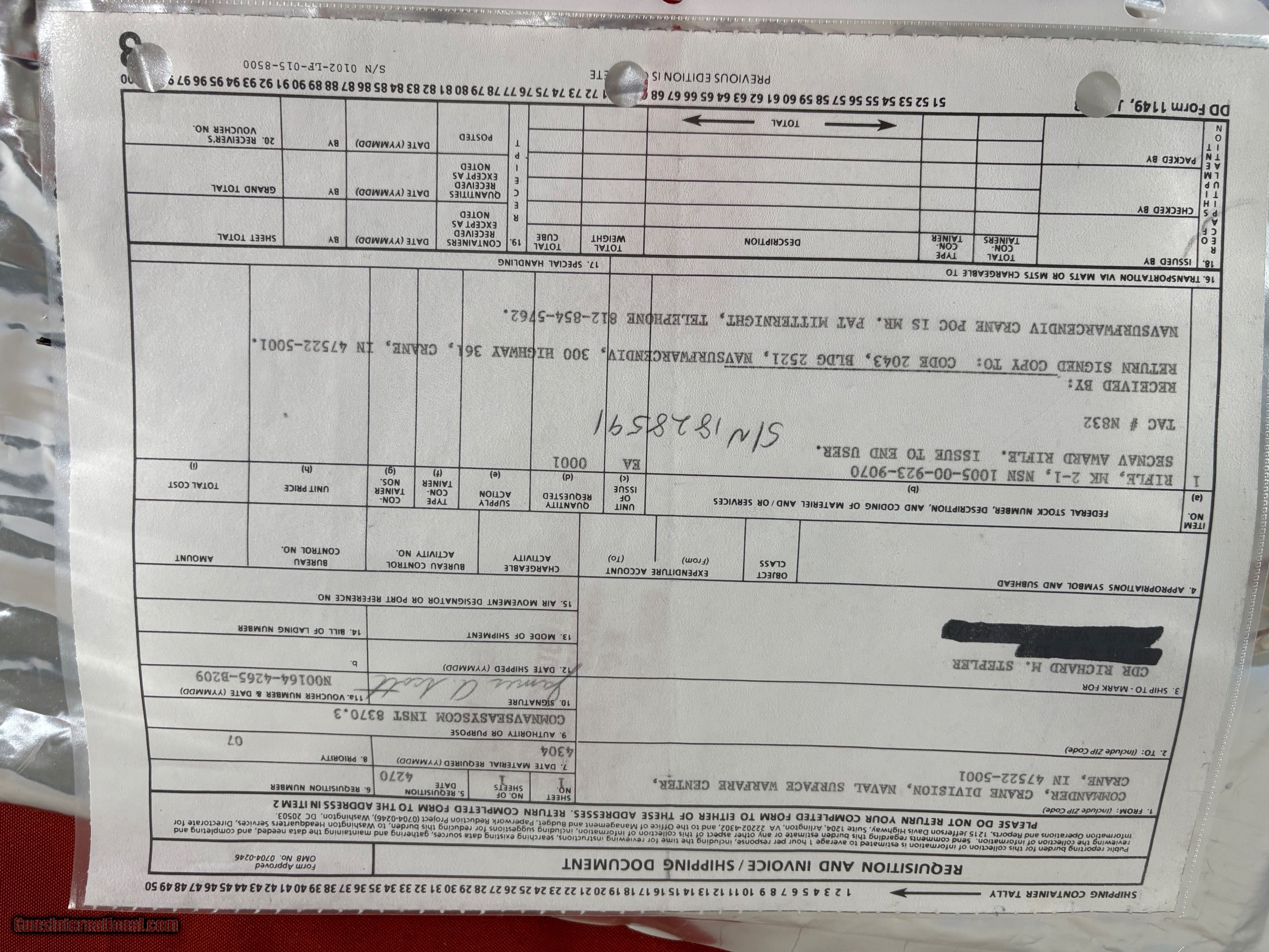 Description: SPRINGFIELD GARAND NAVY MK2 MOD 1 RIFLE . SER# 1828591, CALIBER 7.62 NATO . H&R BARREL IS DATED 5/65 . EXCELLENT BRIGHT BORE WITH A TE 1 ME 1 BARREL . STOSK SHOWS SA GAW CATOUCHE. LOCKBAR REAR SIGHT, CLEANING ROD IS IN THE BUTT TRAP DOOR. COMES WITH CERTIFICATE FROM COMMANDER, CRANE DIVISION, NAVAL SURFACE WARFARE CENTER CRANE, IN. ALSO COMES WITH THE FOIL SHIPPING BAG. EASTERN BRANCH FIREARMS ADD 50.00 SHIPPING – HANDGUNS SHIP NEXT DAY AIR ADD 50.00 SHIPPING – LONG GUNS SHIP GROUND OPTIONAL INSURANCE IS AVAILABLE AT 1.25 PER 100.00 Questions e-mail or call Glen at Eastern Branch Firearms 207-215-5021 TERMS – PLEASE READ BEFORE I DO NOT HAVE A LAYAWAY OPTION ( WE ACCEPT CREDIT CARDS ) -- I GET ALOT OF REQUEST FOR TRADES, I WOULD PERFER NOT TO DO TRADES ON MY INTERNET LISTINGS PAYMENT OPTIONS- We accept money orders, cashier’s checks , bank checks. personal checks ( with personal check - shipping hold for 10 days from check being deposited - no exceptions) . We accept all major credit cards please add 3% to the ’s cash discount price.(Shipping within the state of Florida - Florida Residents must pay sales tax) .Handguns and long guns do need to be shipped separate. PLEASE do not send payment via FED EX . USPS & UPS are fine. Thank you. We include a signed copy of our FFL with each firearm shipped. SAFTY NOTICE- Buyer is solely responsible for determining that a used gun is safe to shoot. The firearms offered have not been test fired but have been given a visual inspection only for purposes. It is a requirement that every used firearm is inspected by a qualified gunsmith before firing. By , the buyer agrees to hold seller harmless against damages, injury, or death caused by defective merchandise. RETURN POLICY- All firearms come with a 3-day non firing , non messing with ( turning srews ,taking apart,removing parts, scoping. firing, cleaning or messing with in anyway) inspection/return privilege.Inspection is based on a visual review of the gun to confirm the gun is in the condition stated. In the case of a return, buyer pays all shipping charges & if paid for with a credit card buyer absorbs the 3% credit card charges . So please ask questions BEFORE you bid. Thanks for Looking and Good Luck Curio/Relic: Yes Price: $2,650.00 Shipping: $50.00 Buy Now Contact Seller |