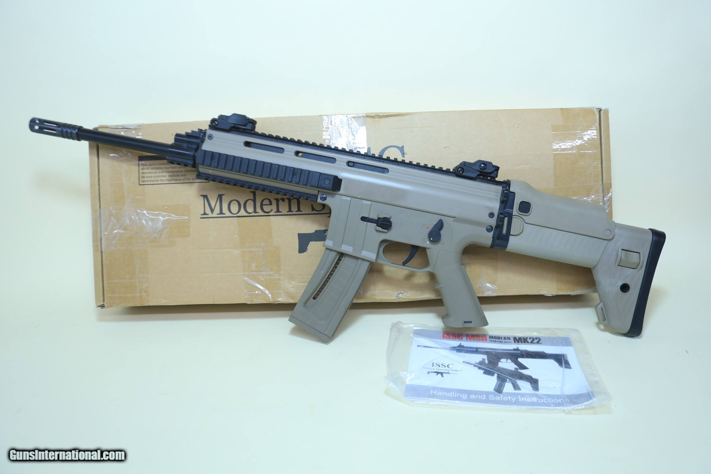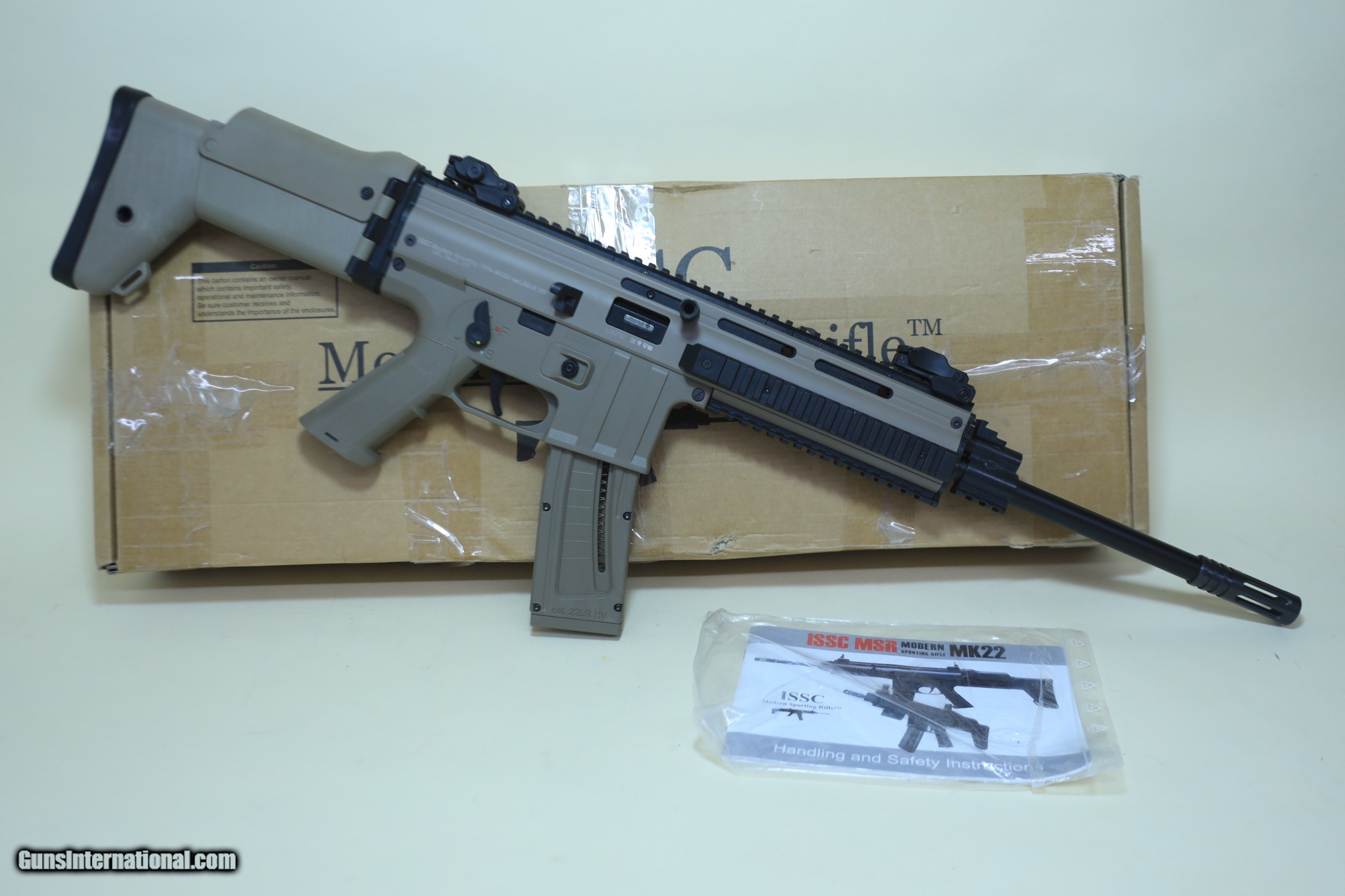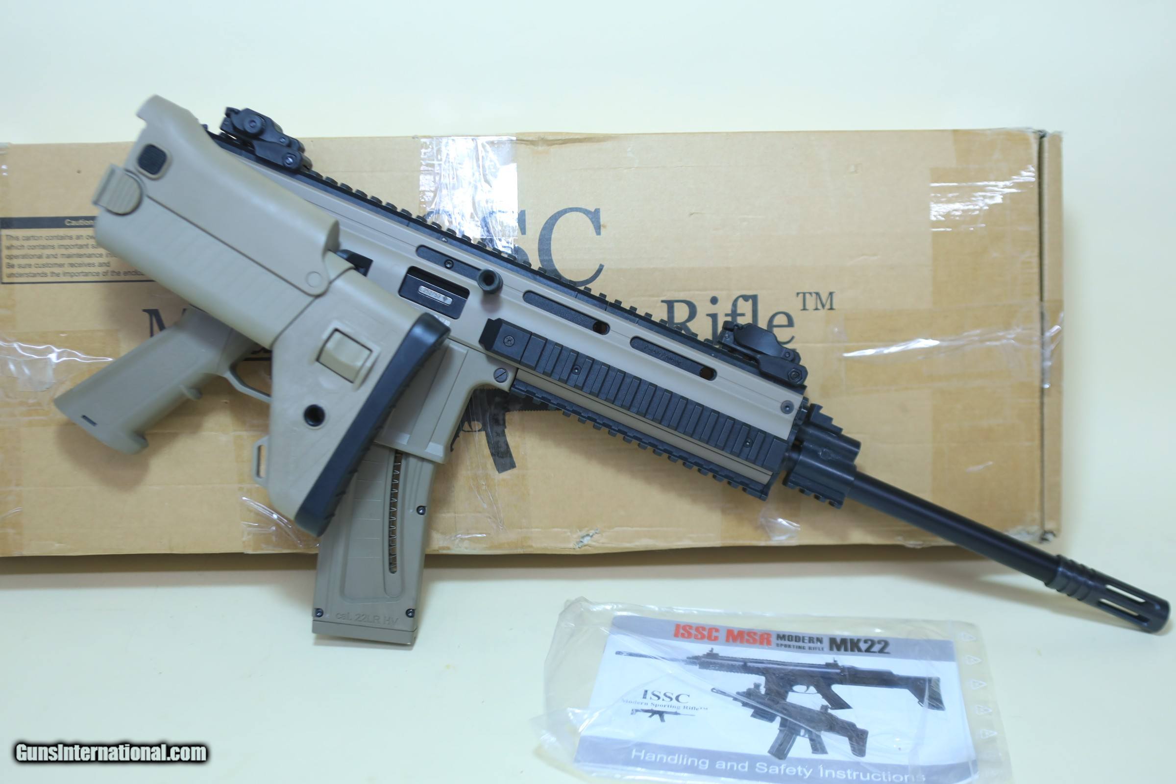 ISSC MK22 .22LR Semi-Auto scar Rifle – Flat Dark Earth, Folding Stock, Tactical Rail System