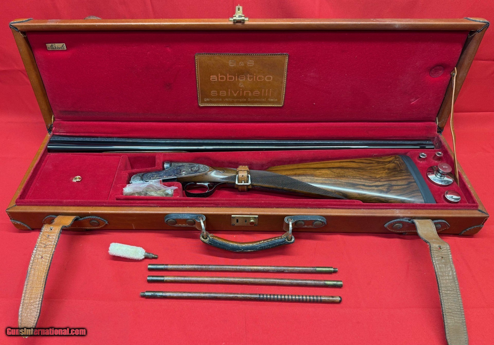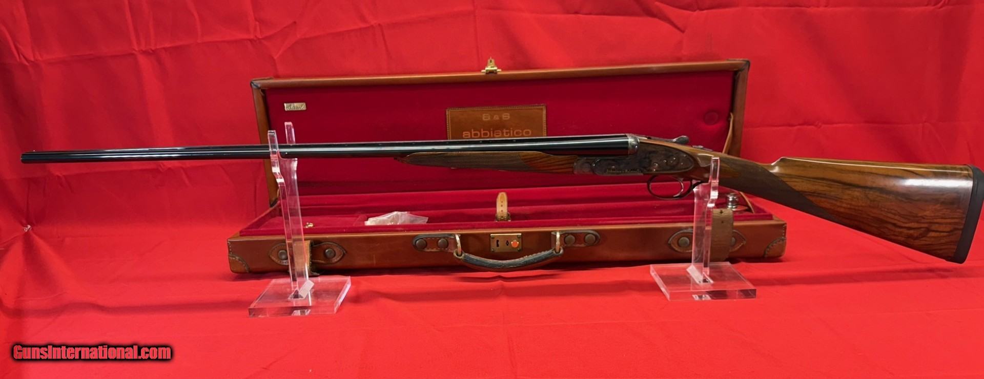 Description: Description: Abbiatico & Salvinelli (FAMARS) VENUS Sidelock Ejector, engraved, Best Gun .410 Ga., 28” Barrels 3" Cham,ber Bl., 97% 14.25" LOP Serial Number # 437 Overall Condition: Overall the condition is fine+ retaining 97% + of its original blue and case coloring with strong ejectors and a tight action. Out of sight there is some slight dulling on the right side of the base of the receiver where "Abbiatico & Salvinelli" is engraved as well as some slight dulling around the right firing pin channel as noted in the photos. The bores are “as new” and the barrels remain tight on face and ring very well. Lockup is extremely tight with the lever still leaning toward the 5 oclock position. The wood at 99%, and checkering is 100%. This shotgun is outfitted with a rubber "Kickeez" buttpad that is fit extremely well to the butt. Includes a very fine "Nizzoli" hand crafted leather trunk case with accessories. Stock: The buttstock has gorgous grain with a classic English straight-hand grip that matches in color and figure with its splinter forend. Wood to metal fit is perfect. This particular shotgun has been fit with a "Kickeez" buttpad. The hand checkering is wrapping around the forearm with a diamond field design is in beautiful crisp condition accenting the gold inlaid crest on the underside of the forearm. Engraving: The action has a bright case color finish with a traditional intricate small scroll pattern engraving on the receiver, tang and trigger guard. Engraved by Italian Master Engraver Gian Marco Sabatti, marked "Sabatti G Marci Inc. on bottom of receiver near trigger guard as noted in the last photo. Inscriptons: The inscription, “Abbiatico & Salvinelli"” is very small on the topside of the left barrel. Hidden from view, on the bottom side of the frame is marked "Abbiatico & Salvinelli, FINITO with a star above, "PSF" with two stars above, A&S, "410" and serial number "437". On the bottom side of the barrel near the breech on the lugis stamped with first names of craftsmen involved in production of these fine guns, including Mario (Abbiatico) and Remo (Salvinelli), along with Dante, Tony, Gian, and Poli. On the underside of the barrels on the left barrel is marked "CAM.76" along with 10,6 and two stars indicating Improved Modified or 3/4 Choke , on the right barrel is marked "KG1 110" "Joe Bojalad - Pittsburgh" 10,6 with 4 stars indicating Improved Cylinder or 1/4 Choke. We are not experts on italian shotguns, so if there is something we may have missed or additional information you would like we would be more than happy to answer any an d all questions. **PLEASE DO NO HESITATE TO CONTACT US WITH ANY QUESTIONS, ADDITIONAL PHOTOS OR VIDEOS CAN BE SENT UPON REQUEST! $17,500 Or Best offer! Shotgun Gauge: .410 Gauge Manufacturer: Abbiatico & Salvinelli Model: Venus Side Lock Serial Number: 437 Barrel Length: 28 Bore Condition: Mint Price: $17,500.00 Contact Seller |