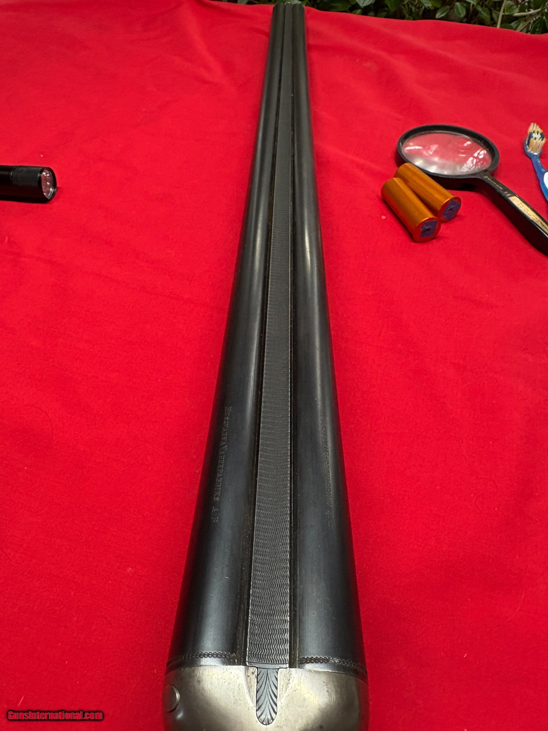Description: This is a rare 12 gauge Husqvarna model 51 hammer gun, as made in Sweden, prior to 1970…The 29 ½" fluid steel barrels are choked mod and imp mod… 2 3/4" chambers, with excellent bores…Tight action, with double under lugs and Greener cross bolt…Action locks up tight…Fine back action lock works make for a strong, reliable gun…14 ¼" length of pull over vented pad, with drops of 1 5/8 and 2 5/8 inches…Weighs 7 pounds… Overall fine condition with no issues…A classic Swedish made hunting gun that works well over here too… Curio/Relic: Yes Price: $750.00 Contact Seller |