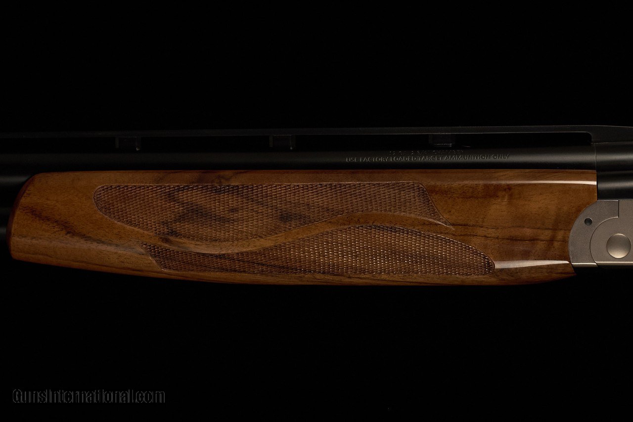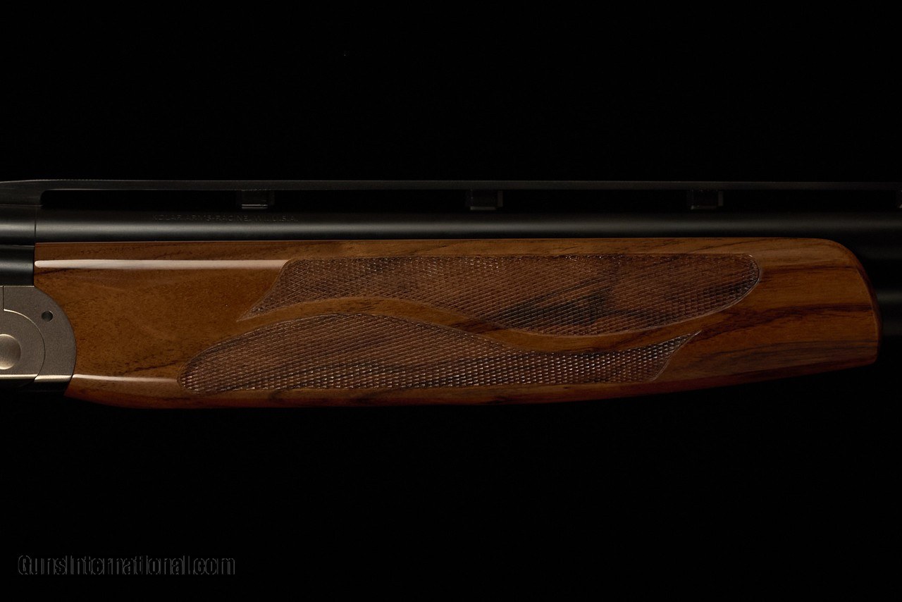 Brand new Kolar Max Lite Sporting with $1k wood upgrade, Ramp Taper rib, Enhanced Std engraving pattern, and FX stock with the exclusive Gordy Grip which features a more vertical hand position, larger palm swell, and shorter trigger reach as compared to the regular Kolar FX stock. The Gordy Grip allows shooters with average-sized hands to easily reach the trigger, while those with above average-sized hands can simply move the trigger blade forward as intended.